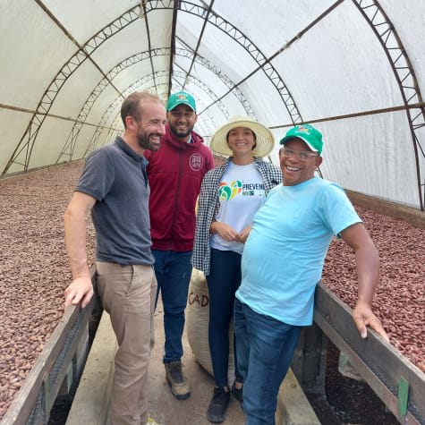 Die herkunftsreine* Bahibe 46 % aus der Dominikanischen Republik, eine Grand-Cru-Milchschokolade von Valrhona mit Kakaogeschmack und Noten von Getreide und reifen Früchten, deren *Kakaobohnen aus der Provinz Duarte stammen.
