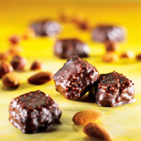 In a petit gâteau, a cake or a petit four, nuts (such as pistachios, hazelnuts, almonds and macadamias) reveal all their flavors when combined with chocolate.