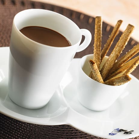 Put the Ground chocolate in a pitcher, then add the hot water and stir with a spoon to melt the chocolate shavings.