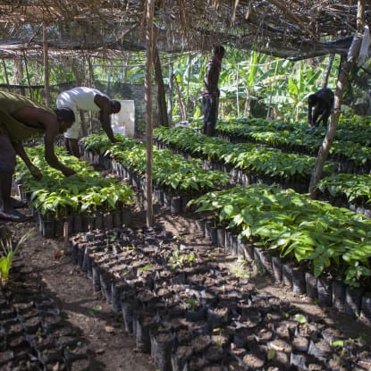 Since 2017, alongside our Haitian partner, Feccano, and with the support of the NGO ACSF (Agronomes et Vétérinaires Sans Frontières), we are financing a project to regenerate Creole gardens. The partner producers have taken part in individual plot surveys, which determine what action needs to be taken to boost productivity and show that profitable eco-friendly cocoa farming is really possible. These actions diversify sources of income, improve food security and help to preserve biodiversity.