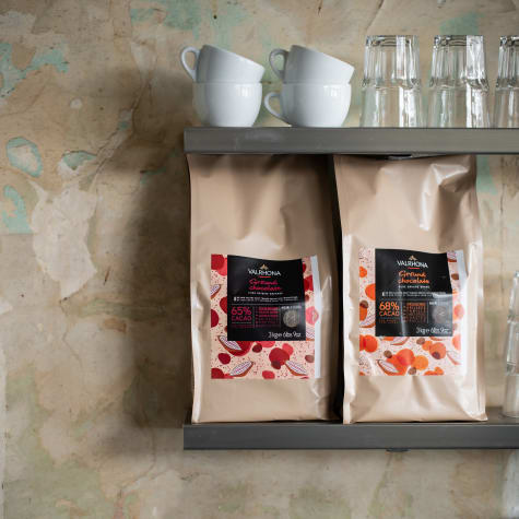 Valrhona reinvents the world of hot chocolate with two finely ground dark chocolates, ready for use.
