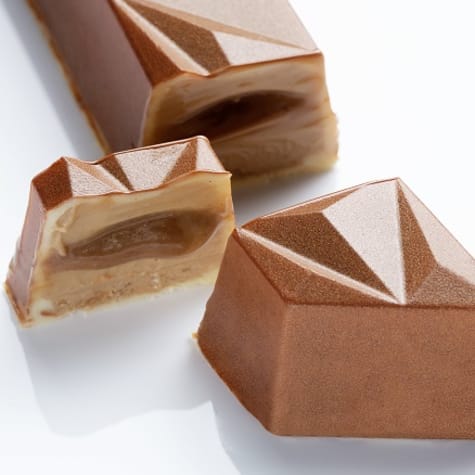 En el agujero que nos habrá quedado dosificaremos el interior de almendra y dejaremos que se asiente durante 24 horas, después volveremos a rellenar con gianduja dejando un margen para colocar el crujiente.