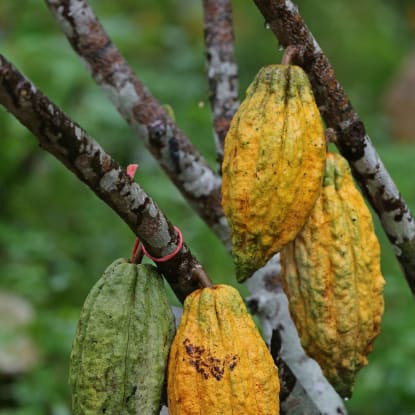 Partenaire depuis 2015, la Grenada Cocoa Association, fondée en 1964, cultive un cacao Fairtrade dans des jardins créoles en agroforesterie. Avec Valrhona, elle a développé un profil aromatique camphré unique, reflet de la tradition familiale locale.