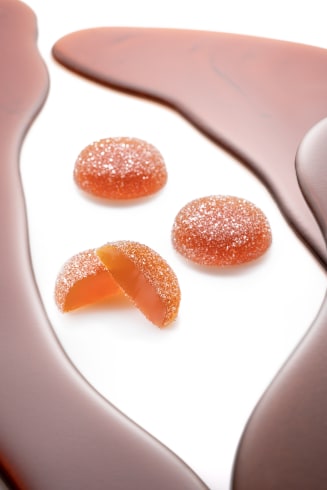 « A travers cette recette, nous avons voulu travailler sur une confiserie simple, durable dans le temps, tout en conservant le caractère de ce produit unique. La composition d’Oabika nous a donc permis de réaliser une gelée moins sucrée qu’une pâte de fruit, avec des notes florales, une fraîcheur et une acidité naturelle propre à la concentration d’Oabika. La couleur ambrée d’Oabika est conservée et la cuisson à 74°B nous donne une texture idéale à la dégustation. »