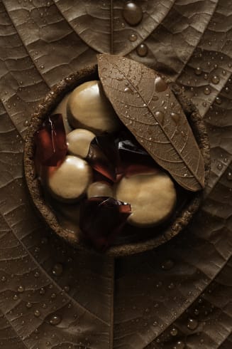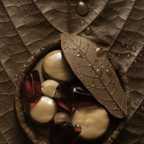 Per finire, posizionare una piccola foglia di cioccolato. Il dessert è pronto!