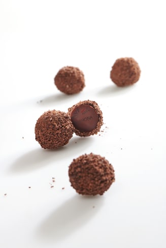 Avvolgere i tartufi nel croccante grué e lasciar cristallizzare.