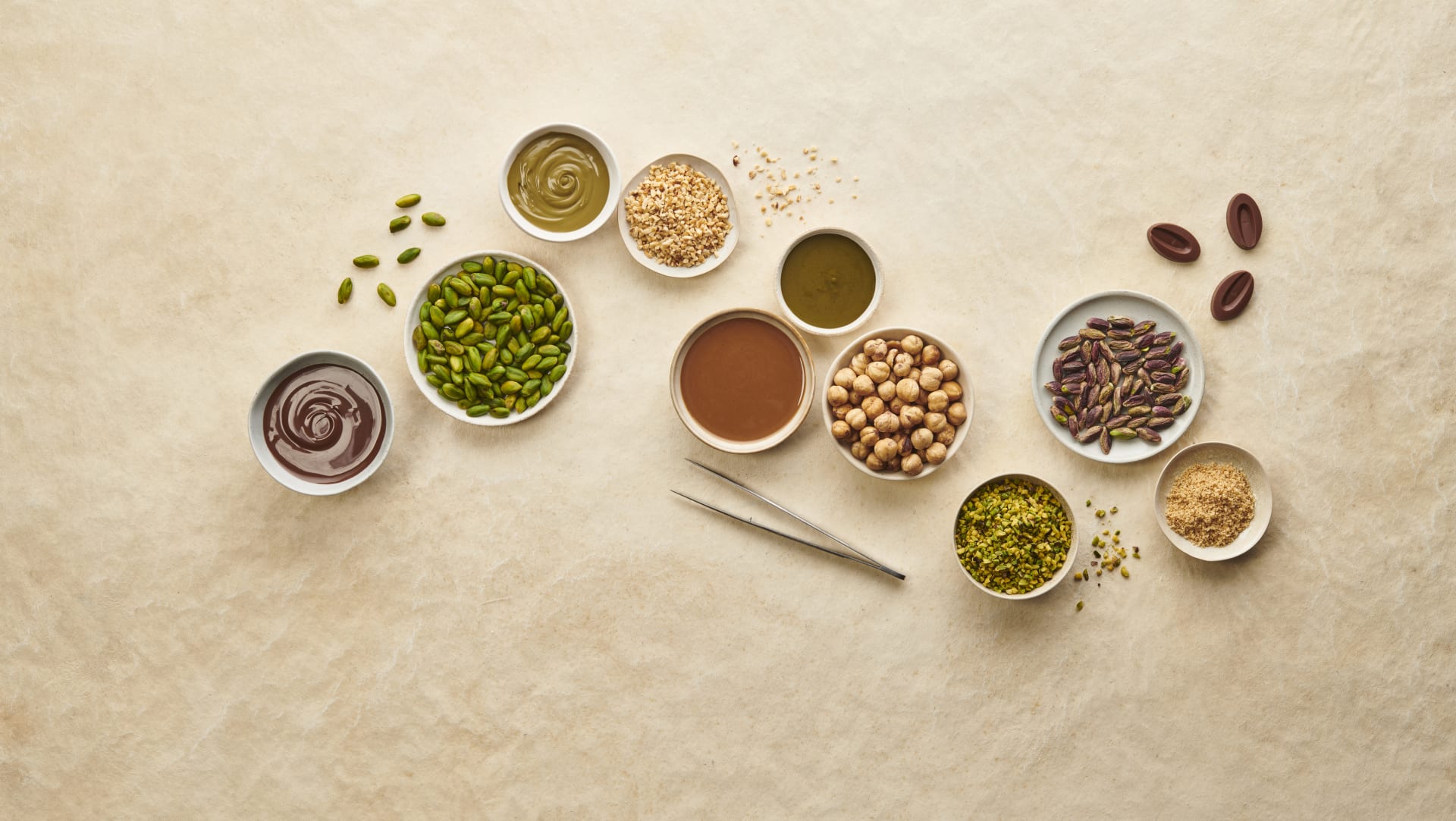 パリアーニでは、信頼できる生産者が厳選したホールナッツから、オイル、ダイス、パウダー、ペースト、スプレッドなど、さまざまな製品を生み出してきましたが、現在イタリアでは、コンフィやセミ・コンフィのフルーツや野菜、天然由来のエッセンス、さらには、ピスタチオのジャンドゥイオットである「ピスタチオット」、イタリアの有名なシェフ、ルイジ・ビアゼットとのコラボレーションで作られた、IGP ピエモンテ産ヘーゼルナッツを使用した「トルタ・ズブソリーナ」、そしてさまざまなプラリネなど、製品のラインナップが広がっています。